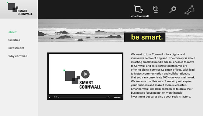 Cornwall should become a digital and innovative center of the UK. The concept is about attracting small to middle size businesses to move to Cornwall and collaborate. The key is to offer businesses perfect working conditions - smart offices, which would increase the efficiency of communication and collaboration.
